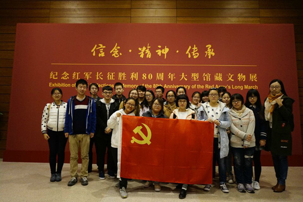 10月30日上午,我支部前往国家博物馆参观纪念红军长征胜利80周年大型馆藏文物展,通过与文物的近距离接触,在长征中政治宣传所用的门板、飞夺泸定桥所用的子弹、红军御寒所用的棉大衣和过草地时充饥所用的鼓皮等文物中,切实感受红军二万五千里长征的艰难困苦。