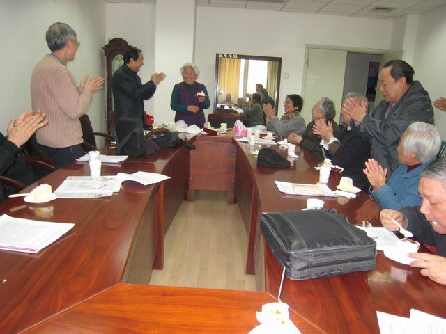 时值冯月华同志75岁生日。学院赠送了生日蛋糕。所有与会同志一同祝愿冯老师生日快乐,身体健康。