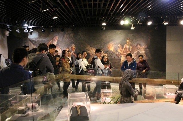 大家首先参观的是周口店北京人遗址,进入博物馆后,便有讲解人员带领同学们游览全馆,随着工作人员生动细致的讲解,同学们了解了中国古人类的形象与生活图景,看到了华北地区旧石器文化的面貌,也了解到了周口店北京猿人遗址的挖掘过程,并被考古学家们数十年如一日的辛勤研究深深打动。