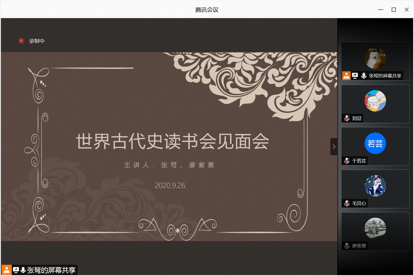 9月26日下午两点,春秋学社在线上举办了本学期第一次世界古代史读书会。本次读书会的主要内容为介绍本学期阅读书目及读书会开展形式,由必威betway西汉姆联世界史方向的博士生张弩同学和硕士生廖紫蕙同学主讲。