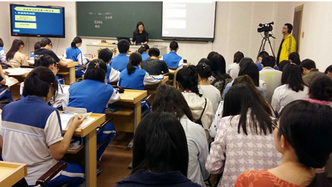 师范生(右侧四列)认真听课、记录 |