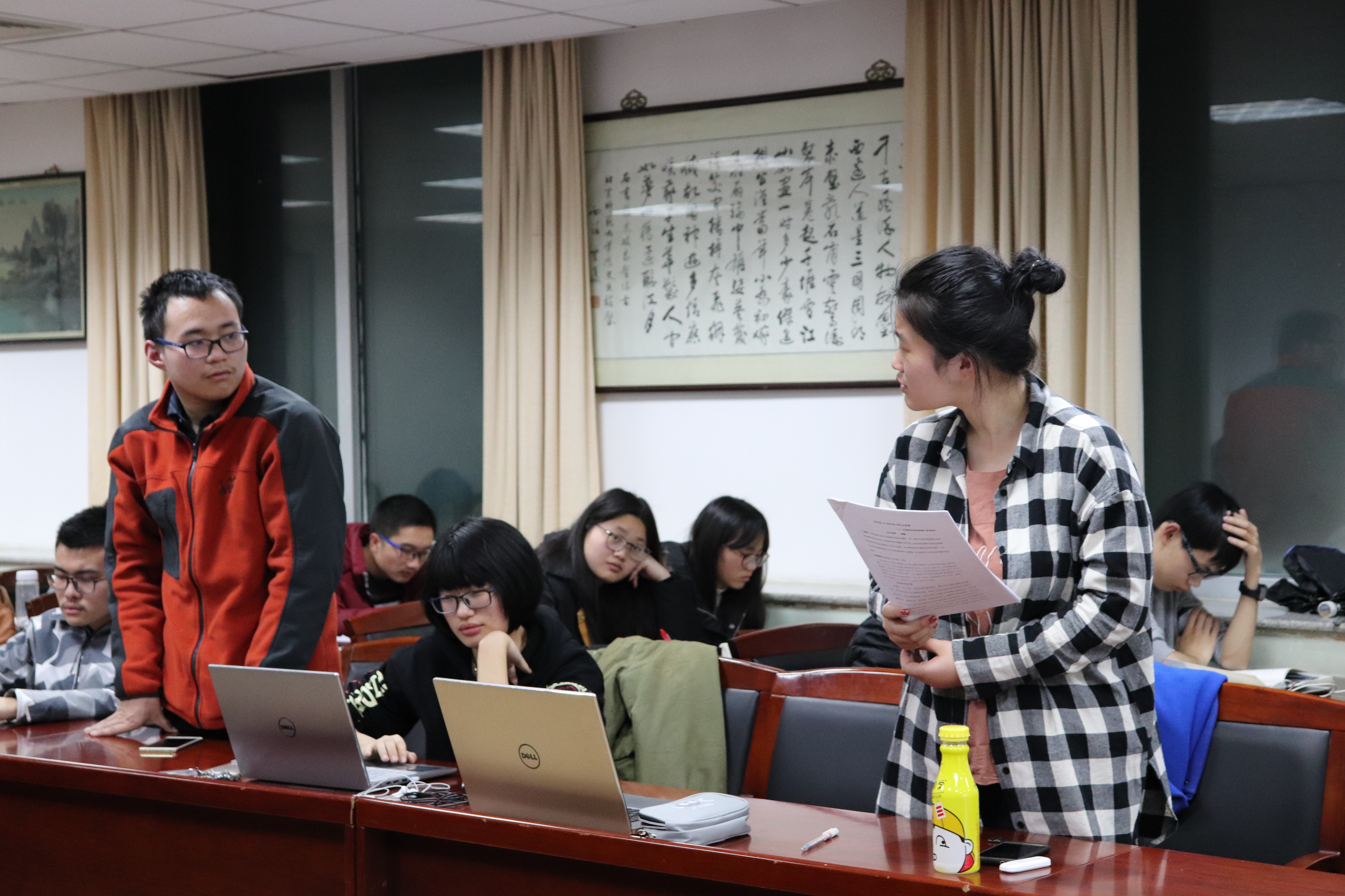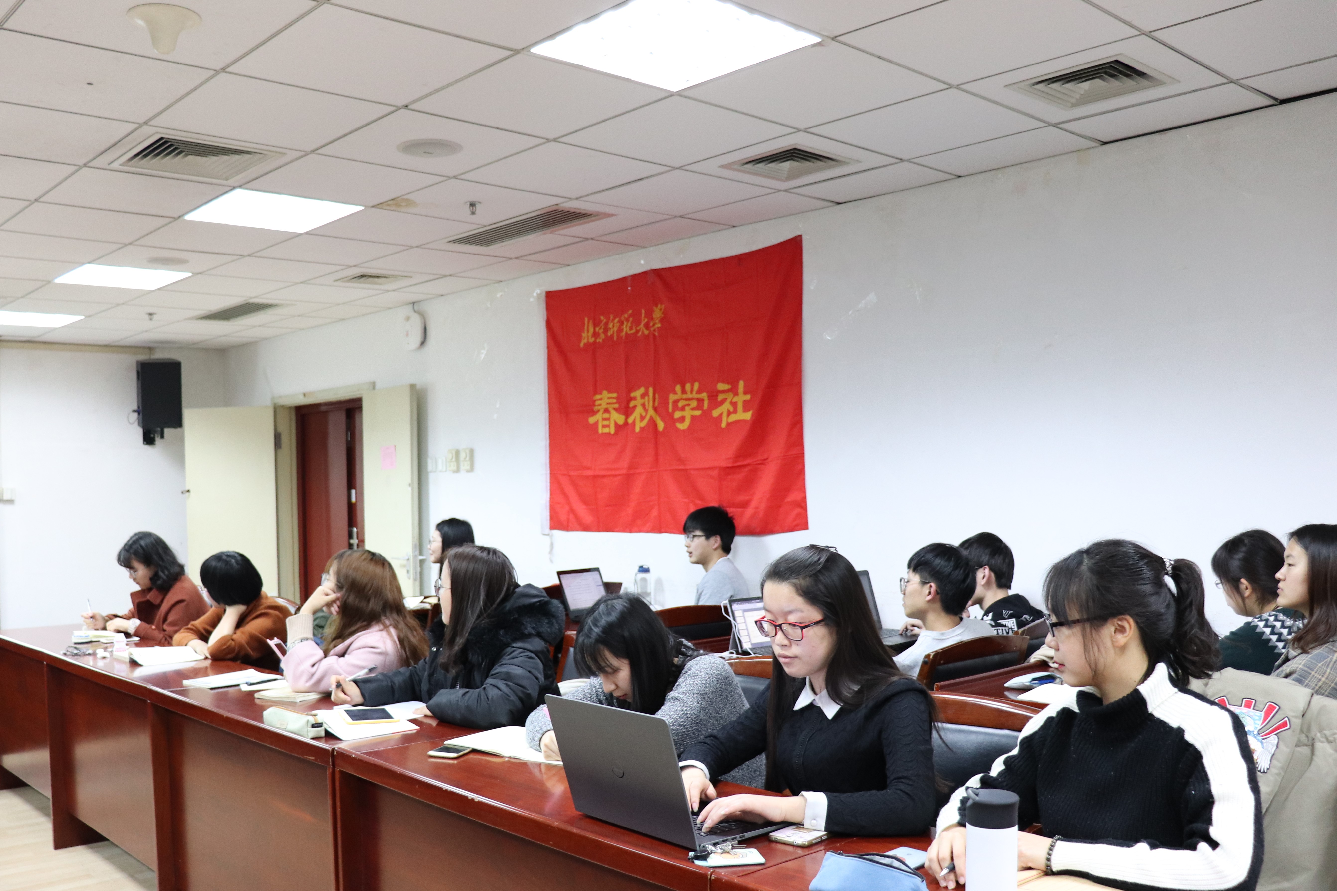 各小组成员展示完毕后,社长洪英、社长助理范沛沛归纳总结了同学们在本次寒假读书交流会中存在的问题及日后需要努力的方向。最后,春秋学社前任社长宣柳对各小组的展示进行了集中点评,并从自身学习经验出发,向同学们分享了写学术书评与读书报告、读书以及阅读文献与史料的方法。
