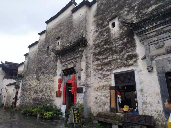 7月5日,师生一行乘坐大巴车前往另一处世界文化遗产——西递古村落进行参观考察。西递始建于北宋庆历七年(公元1047年),所有街巷均以黟县青石铺地,古建筑为木结构、砖墙维护,木雕、石雕、砖雕丰富多彩,巷道、溪流、建筑布局相宜。走入西递,首先映入眼帘的便是建于明万历六年(1578年)的胡文光牌坊。牌坊东西两面分别刻有“荆藩首相”和“胶州刺史”八个大字。牌坊建造分为御制、恩荣、奉旨、敕建四个等级,历史上西递曾有十三座牌楼,大多是旌表孝悌贞节的,而直接由皇帝恩准敕建的牌坊独此一座。西递的明经胡氏也是当地人口中的“明经胡”,原是唐昭宗后人改姓而来,同学们在老师的指引下参观了当地的胡氏宗祠——敬爱堂与追慕堂。敬爱堂中高悬楹联“老祖宗家训义祖大于始祖,明经公教诲儿孙不得复宗”。追慕堂内记载着明经胡氏三房分别迁往绩溪、望江、西递的谱序。西递村保存完整的大夫第、西园等建筑群,展示了“东瓶西镜”、“四水归明堂”、“暗室生财”、“门当户对”等典型的传统建筑文化。整个西递村落空间变化有致,建筑色调朴素淡雅,体现了皖南古村落人居环境营造方面的杰出才能和成就,具有很高的历史、艺术和科学价值。