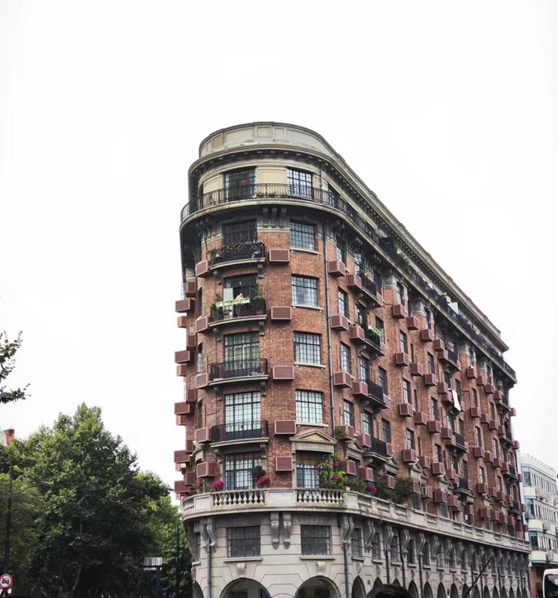 2023年6月11日下午,本调研团队在抵达上海后,稍作休整,即统一乘坐地铁前往著名的武康路历史建筑群进行参观活动。首先,我们顺着淮海中路,参观了淮海大楼。淮海大楼造型独特,呈L型钝角展开,它曾是20世纪30年代上海著名的公寓住宅,呈现出了那个年代独特的、以融汇中西为特征的建筑风格。