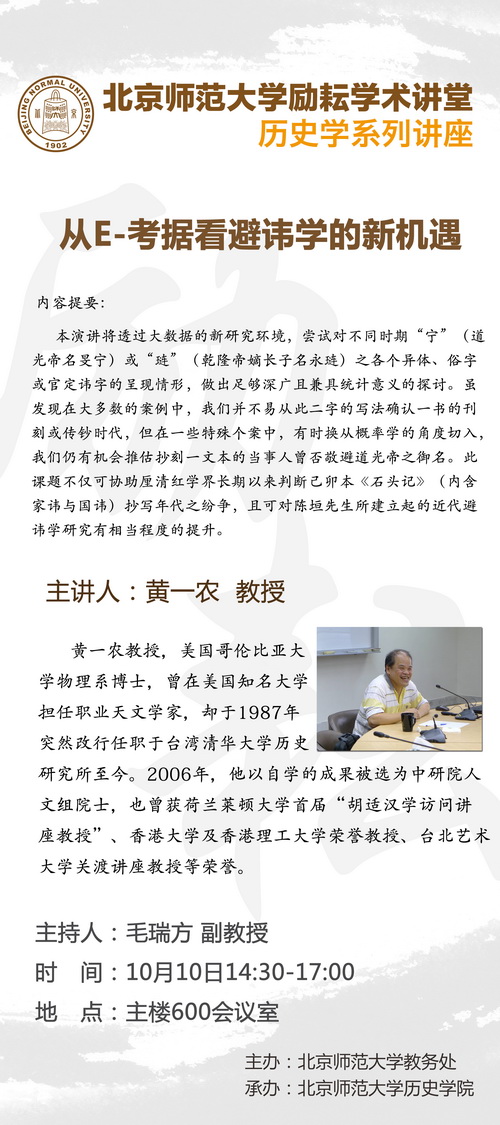 【励耘讲堂】黄一农:从e-考据看避讳学的新机遇
