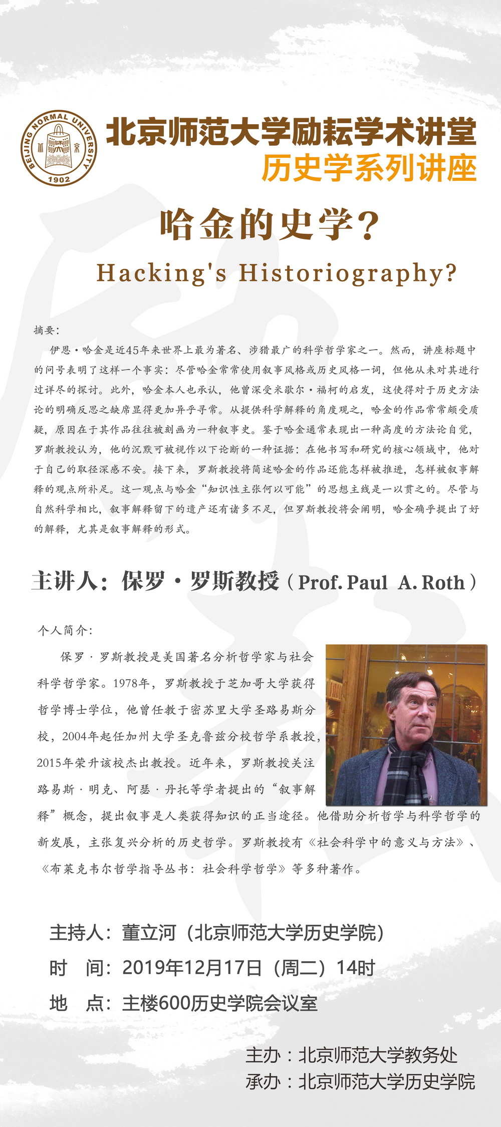 【励耘讲堂】Prof. Paul A. Roth:哈金的史学?