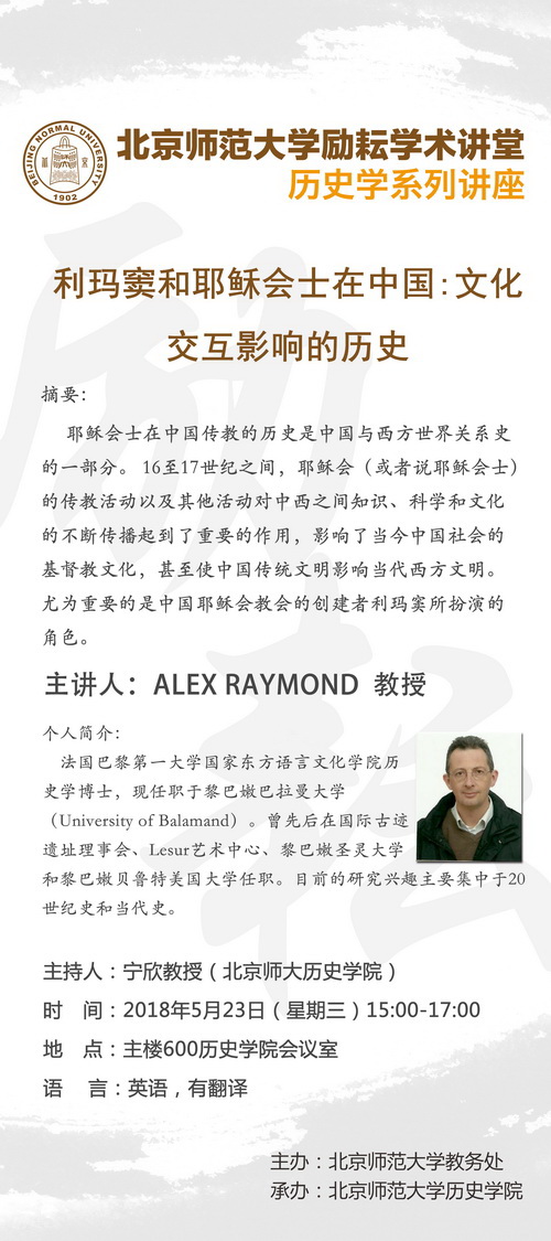 【励耘讲堂】ALEX RAYMOND:利玛窦和耶稣会士在中国:文化交互影响的历史