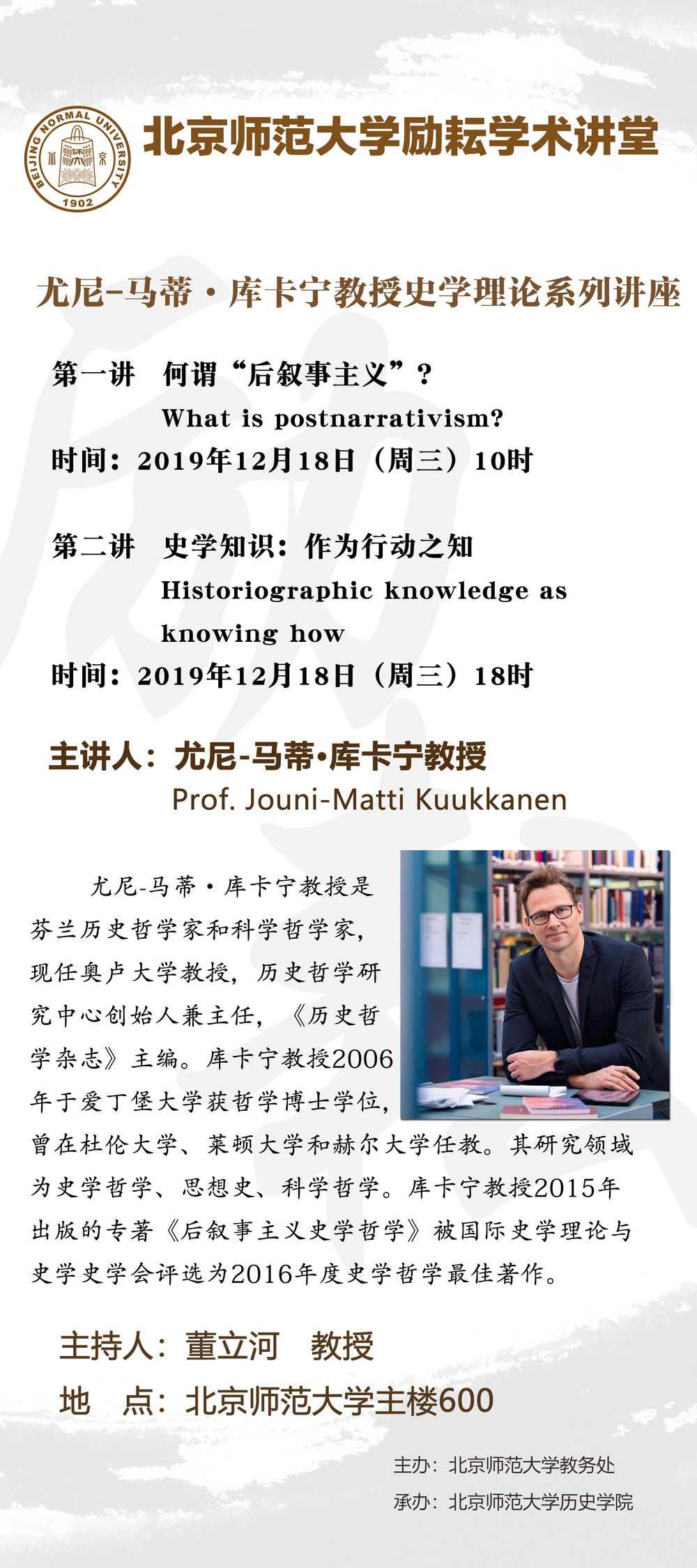 【励耘讲堂】尤尼-马蒂·库卡宁教授史学理论系列讲座