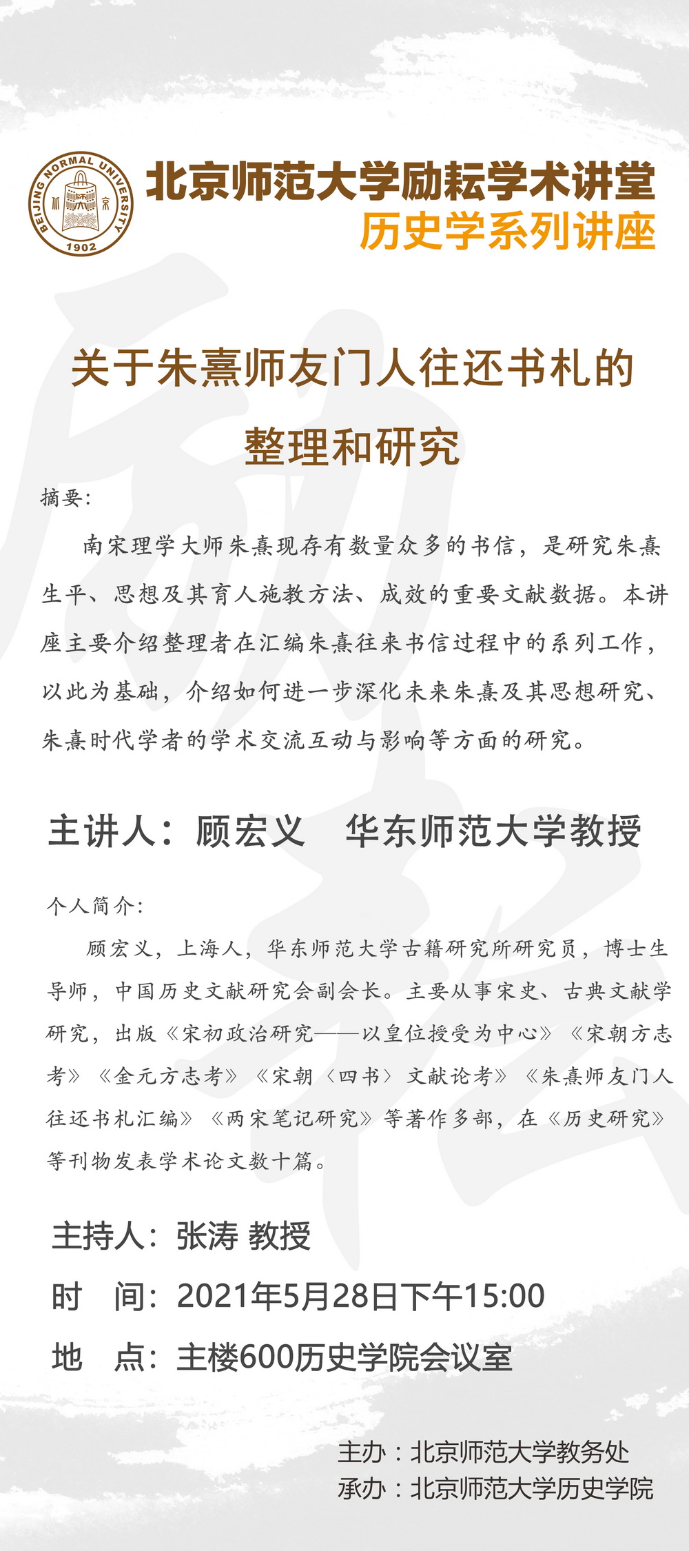 【励耘讲堂】顾宏义:关于朱熹师友门人往还书札的整理和研究