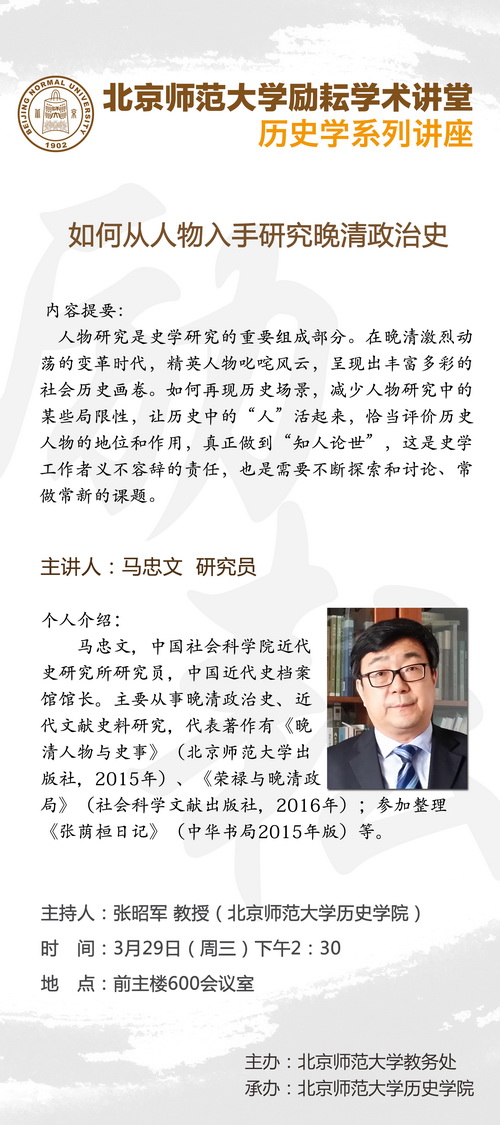 【励耘讲堂】马忠文:如何从人物入手研究晚晴政治史