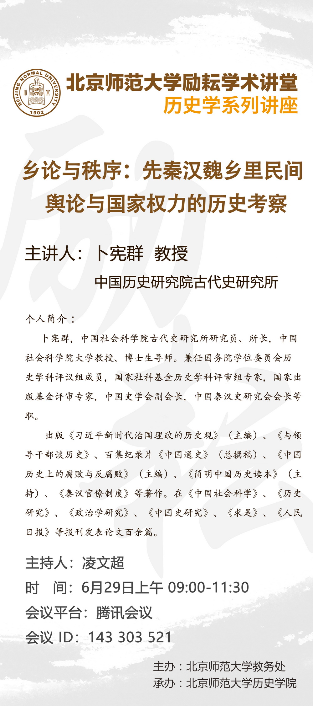 【励耘讲堂】卜宪群:乡论与秩序:先秦汉魏乡里民间舆论与国家权力的历史考察