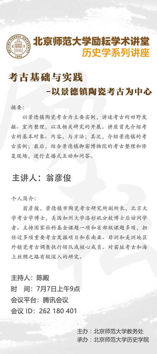 【励耘讲堂】翁彦俊:考古基础与实践-以景德镇陶瓷考古为中心