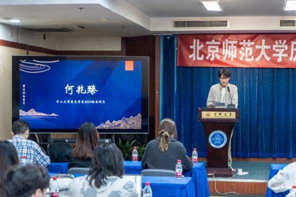 10时30分,论坛进入了报告、评议和讨论环节。按照论坛要求,论文作者和评议同学轮流进行10分钟的汇报和5分钟的评议,最后进行老师点评与自由讨论环节。论坛分为中国古代史与考古文博、中国近现代史与世界史两个分会场。中国古代史与考古文博会场报告内容充实,以时间为轴,涵盖了先秦至明清等各个断代。跟随青铜与简帛的线索,报告从玉覆面形制的演变,讨论至两宋墓葬的四神图像;对战国时期“九州”历史书写的呈现、《契丹国志》系年的考据及《定斋书稿》史源学的追溯,体现了同学们对历史文献抽丝剥茧、深入剖析的学术精神;在职官制度方面,同学们针对春秋将佐转换、北朝府兵制的建立、辽代中台省变迁等问题展开激烈讨论,收获颇丰。