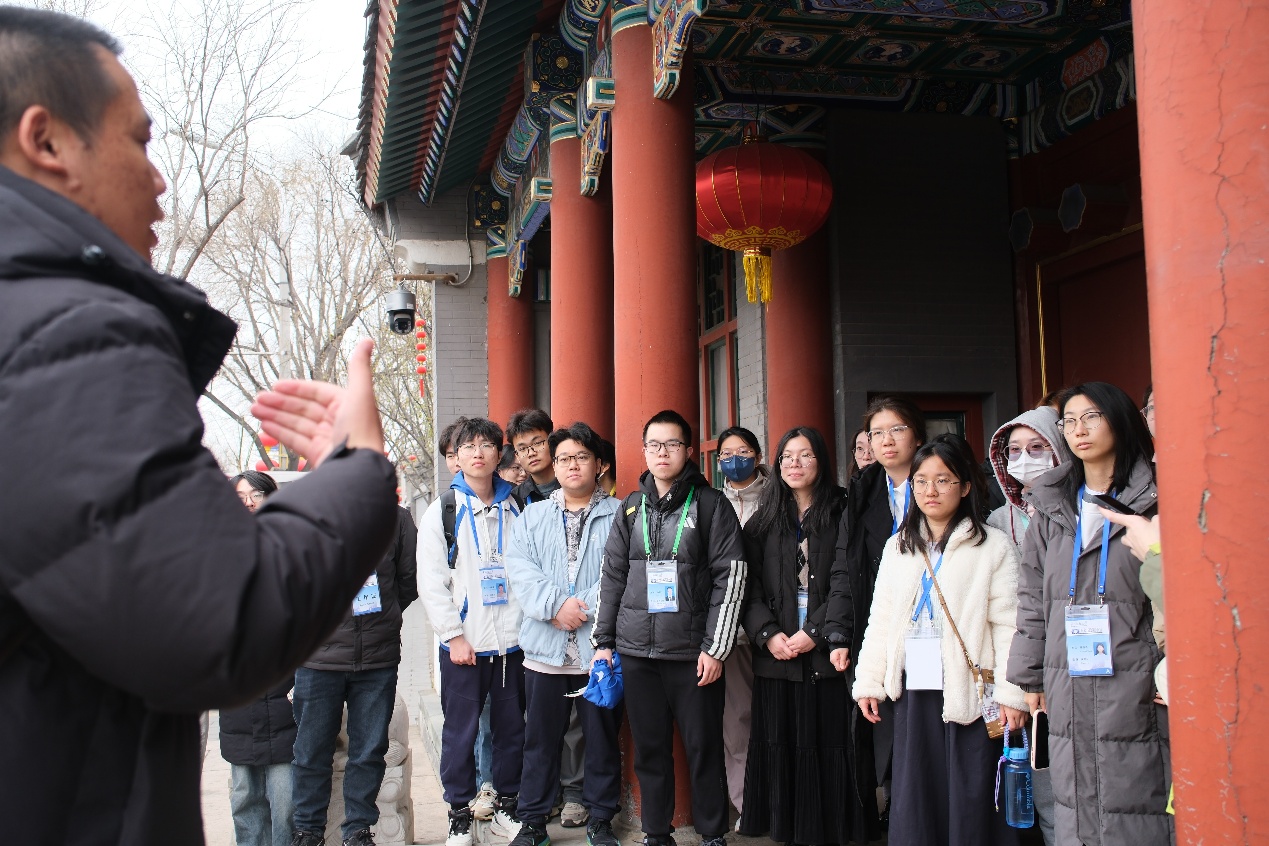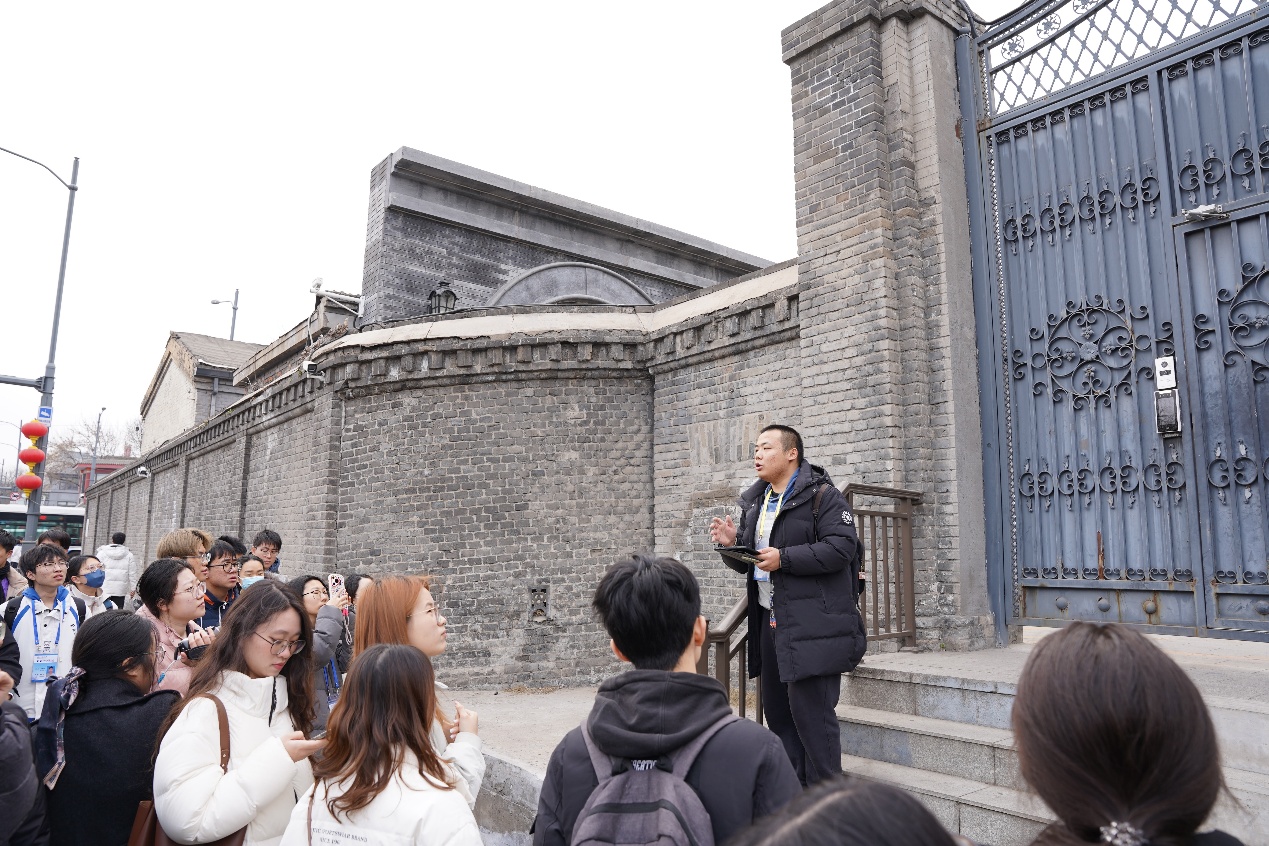 位于北京市东城区张自忠路的第六批“全国重点文物保护单位”孙中山行馆是本次行程的第一站。1924年冬,孙中山先生三赴北京谋求国家和平统一,却不幸肝疾发作,一病不起。次年3月11日,他在行馆内签下遗嘱,临终仍言“和平、奋斗、救中国”,翌日与世长辞。行馆门前,同学们在小组组务总监周逸峰的讲解中,回顾光辉历史、追怀先驱风范,深刻感悟孙中山先生毕生追寻“天下为公”的浩然正气。