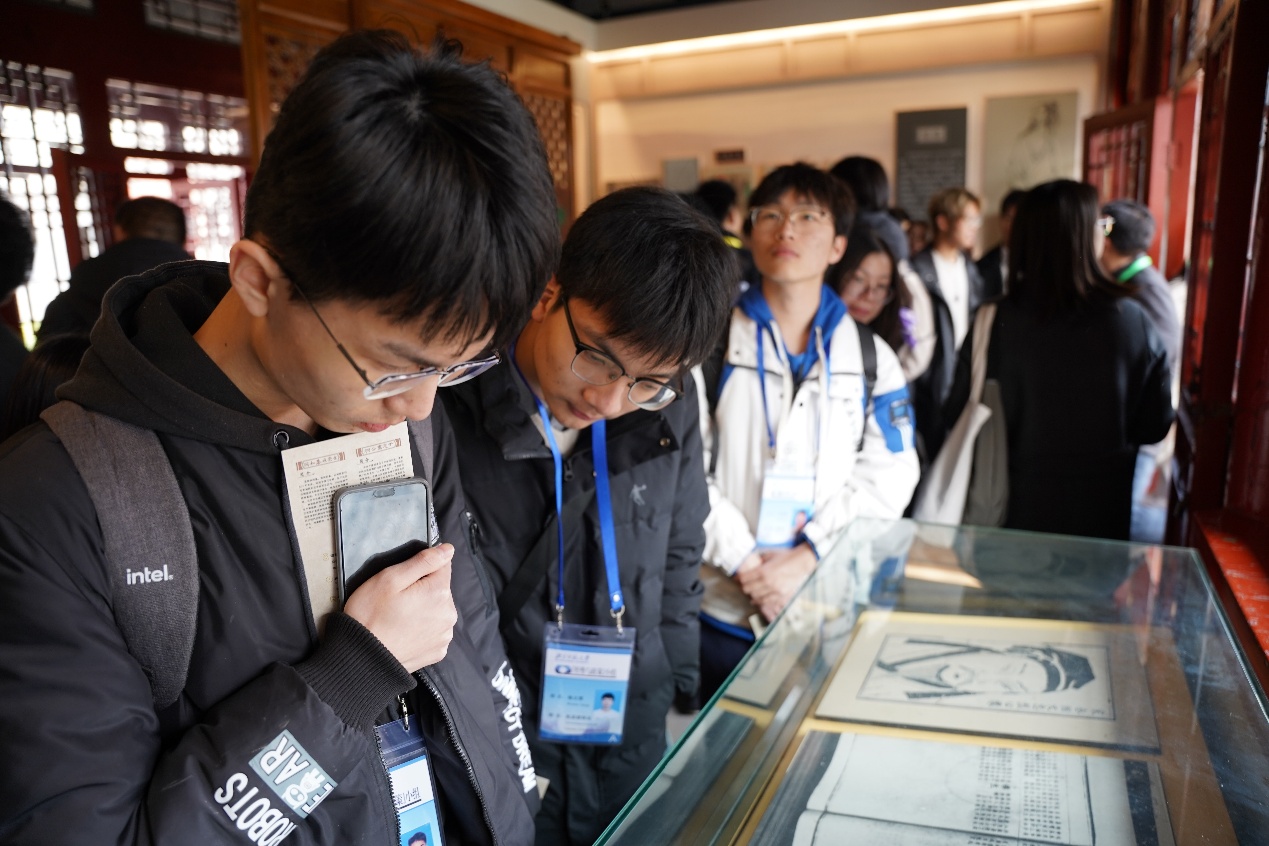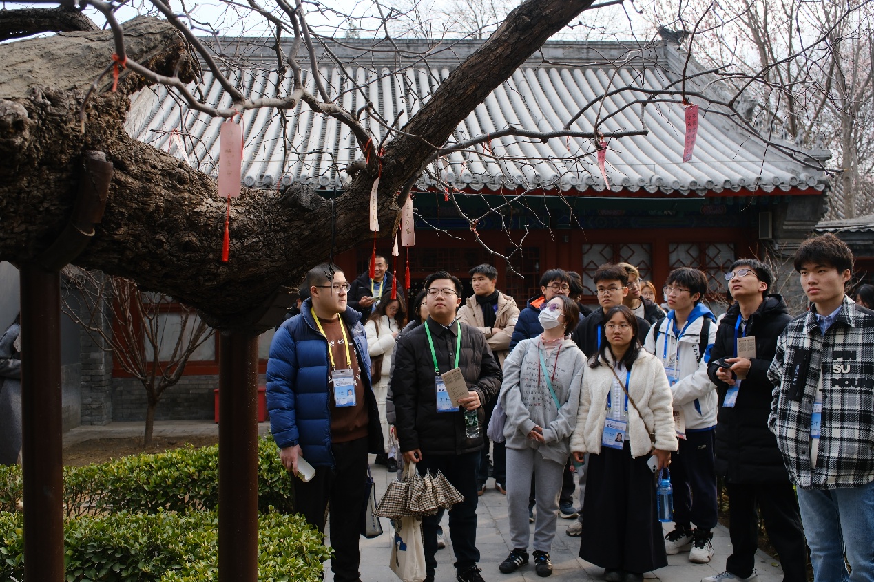 孙中山先生生前常以“养天地正气,法古今完人”自勉,并曾多次手书南宋抗元英雄文天祥《正气歌》中的“天地正气”,墨宝留存至今。行程最后一站,同学们深入府学胡同,瞻仰第七批“全国重点文物保护单位”——文丞相祠。史载七百多年前,兵败被俘的文天祥在此被囚三年,不畏残酷折磨、百端诱降,终以不屈被害。他在狱中写下千古闻名的《正气歌》,追忆“时穷节乃见,一一垂丹青”的仁人志士,接续“鼎镬甘如饴,求之不可得”的从容情怀。同学们在祠内刻有文征明手书《正气歌》碑文的石壁前驻足,逐句解读诗作背后的历史典故和悠远内涵。随后,大家经过陈列有文天祥生平事迹材料的展厅,来到相传由其亲手种植的枣树之前。枣树枝干虬曲、向南倾斜45度,近千年而不倒,文丞相“臣心一片磁针石,不指南方誓不休”的赤胆忠心宛在。最后,大家步入祠堂正殿,向文天祥塑像三鞠躬。