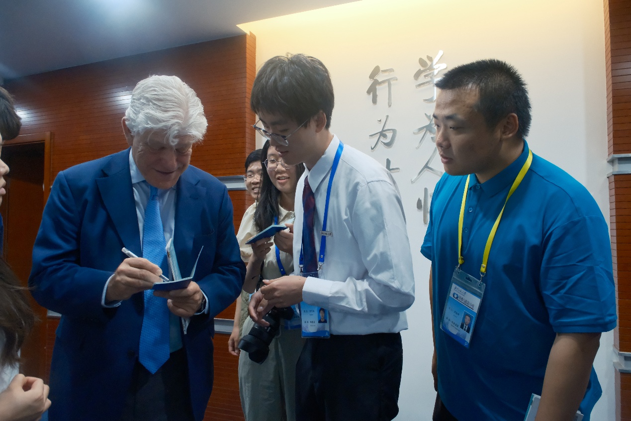 在提问环节,法布里齐奥先生详细解答了小组2024级成员刘臣远、高元提出的关于如何弥合全球智能鸿沟以及大国博弈对可持续发展目标影响的问题,同时他鼓励同学们持续关注联合国为解决“全球南方”发展困境所提供的支持与倡议。活动尾声,法布里齐奥先生与小组成员亲切交谈,并欣然在小组护照上签名留念。