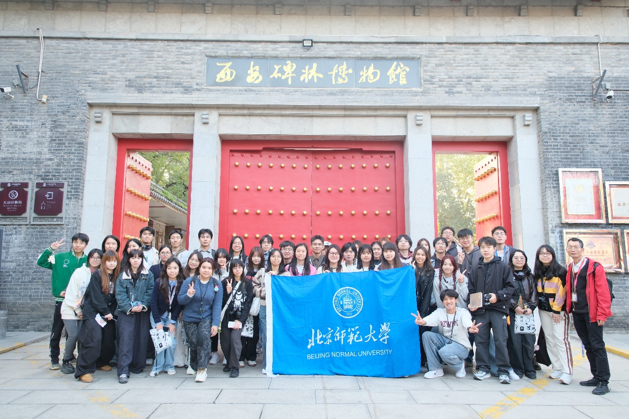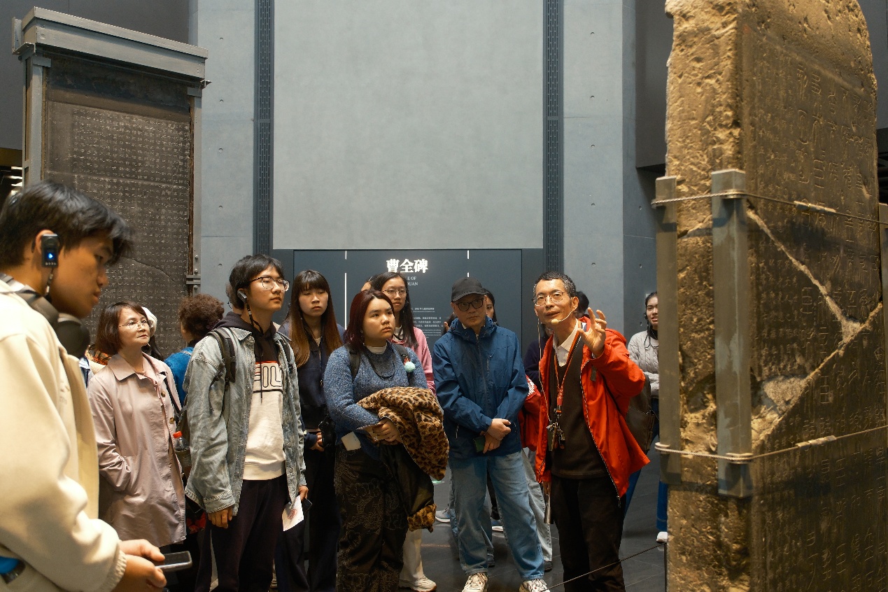 10月30日,同学们来到陕西历史博物馆。陕西历史博物馆以周秦汉唐时期文物为核心,展现中华文化从远古到唐宋的发展历程。通过实地学习,港澳台学生对周秦汉唐时期历史脉络有了整体的了解、提升了对中华文明的文化自信。当天下午,同学们还前往碑林博物馆进行专题学习,直观感受中国书法艺术与历史文献的传承脉络。台湾交换生刘豫文感慨道:“这些碑刻矗立天地间见证四时不停变换,至今仍能屹立于众人的视线中,让我等跨越时空能与千年前的书法家对话,何其浪漫!”