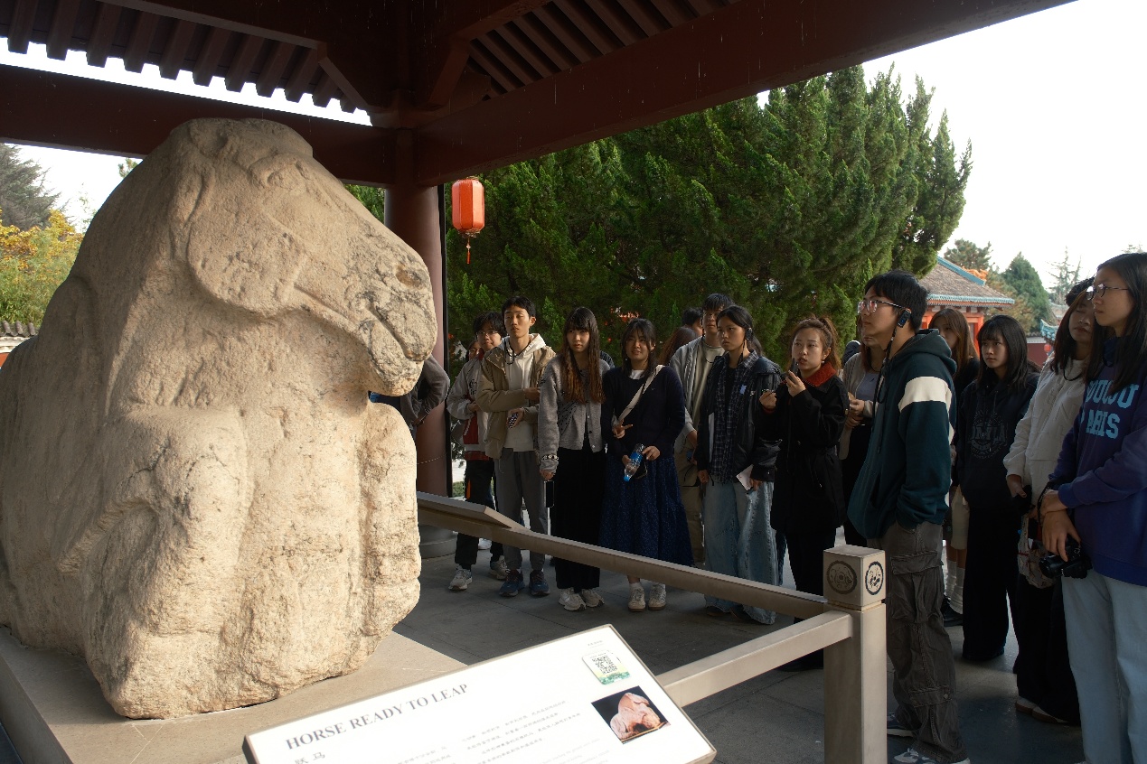 泱泱帝秦,巍巍雄汉。秦汉两朝如巨石般,撑起统一多民族国家的苍穹。11月1日,同学们抵达秦始皇兵马俑博物院。整齐划一的兵马俑方阵映入眼帘,让大家直观领略到古代大一统帝国的强盛气象。统计学院澳门学生施炜说道:“站在一号坑前,看着千人千面的陶俑军团,那种磅礴气势直击心灵。它们不是冰冷的泥土,而像是一个个曾经鲜活的生命,守护着一段尘封的帝国梦想。这一刻,我深深体会到中华文明的厚重与辉煌,也对创造奇迹的古代工匠满心敬佩。”随后,同学们前往汉武帝茂陵与霍去病墓。“茂陵刘郎秋风客,夜啼马嘶晓无迹。”石马卧牛上的线条质朴厚重,胡人刻石里的表情生动饱满,仿佛带着同学们走进了那个开疆拓土、气吞寰宇的大汉盛世。在霍去病将军墓前,大家在肃穆氛围中集体鞠躬,致敬这位捍卫国家大一统的英雄——斯人已逝、碑阙沧桑,但统一的星河始终在中华民族记忆的夜空闪耀。