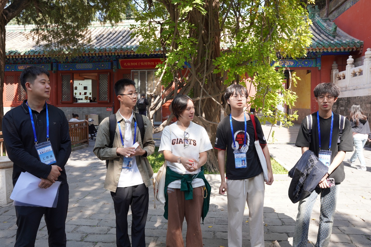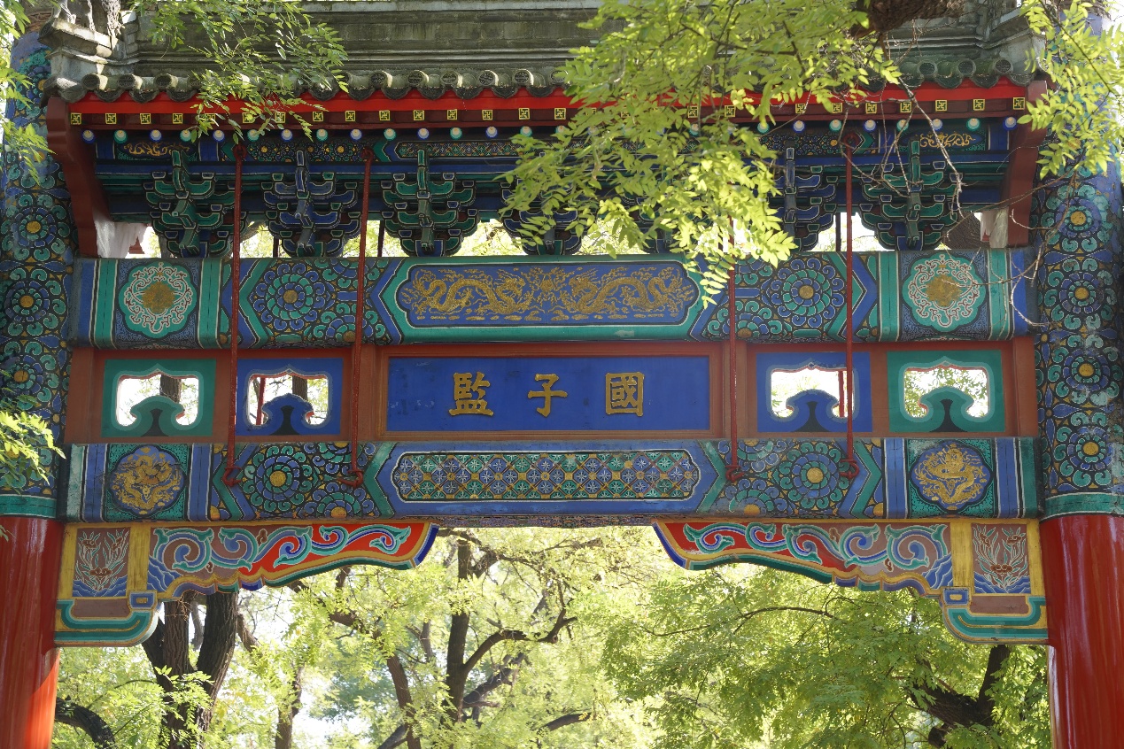 上午10时,同学们由南侧集贤门进入国子监。北京大学博士研究生王胤兆同学为大家带来了别开生面的讲解介绍。国子监建于元大德十年(1306年),整体坐北朝南,按“左庙右学”之制,由三进院落组成,占地20000多平方米,是中国元、明、清三代国家管理教育的最高行政机关和设立的最高学府。历经三代岁月沉淀,这片承载着国家最高学府职能的文化瑰宝,至今仍保留着古朴庄重的规制,静静等候着探访者的到来。