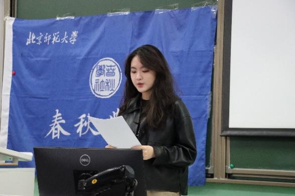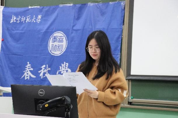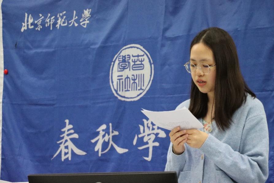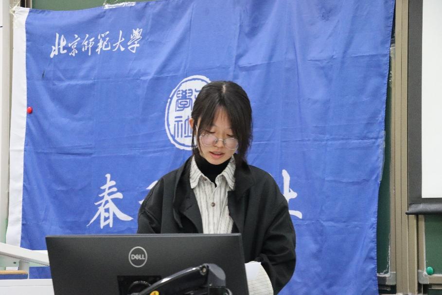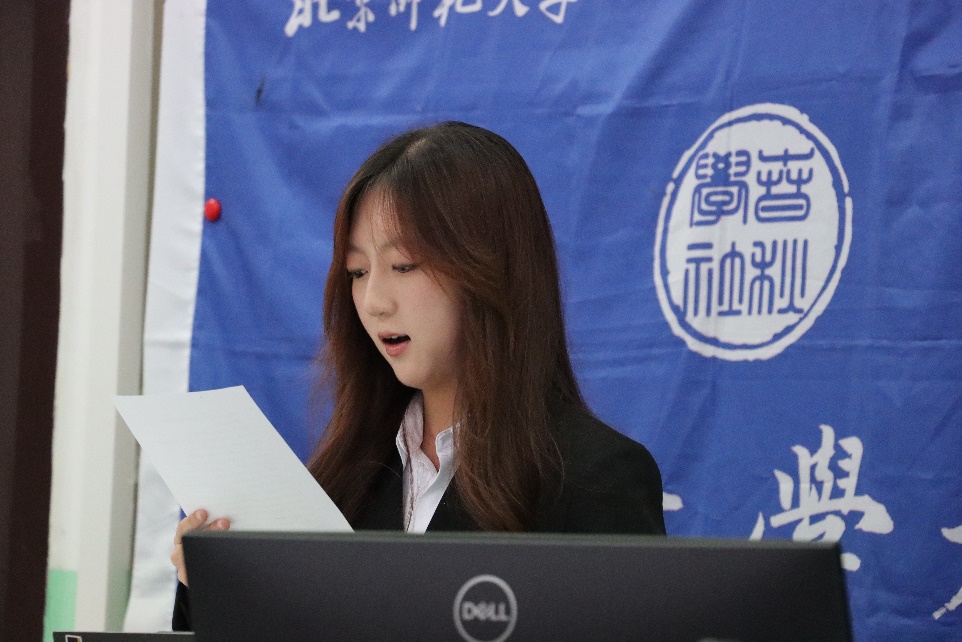 最后,社长江怡慧同学进行了发言。她回顾了自己三年来在学社的成长与收获,从最初怀着对历史学的热爱加入学社,到通过积极参与各类学术活动不断提升专业能力、深化学术兴趣。在这段难忘的旅程中,她特别感恩学社这个充满历史底蕴和人文温度的大家庭给予的滋养,希望大家在社团工作中始终怀抱对历史学的热忱,传承学社友爱互助的精神,共同书写春秋学社更精彩的明天。