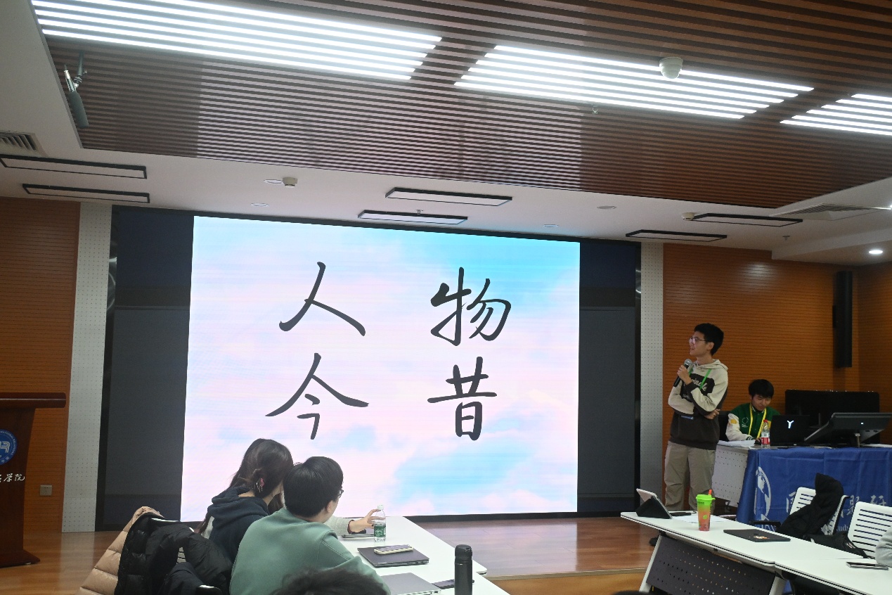 为活跃现场气氛,体现学习型研究型兴趣团体的旨趣,小组还精心准备了时事知识答题环节,由副组长屈威洋和副组长兼学研专员高元担任主考,包含“世界之旅”“人物今昔”“人物荟萃”和“挑战十大人物”等版块。同学们热情参与,举手抢答争先恐后,相互配合考验默契,花样应变妙趣横生。本环节以趣味答题的形式考查同学们对当今“国之大者”的了解与认识,点亮大家对陌生世界的探索欲与好奇心。在不绝的欢声笑语中,本次交流活动圆满结束。