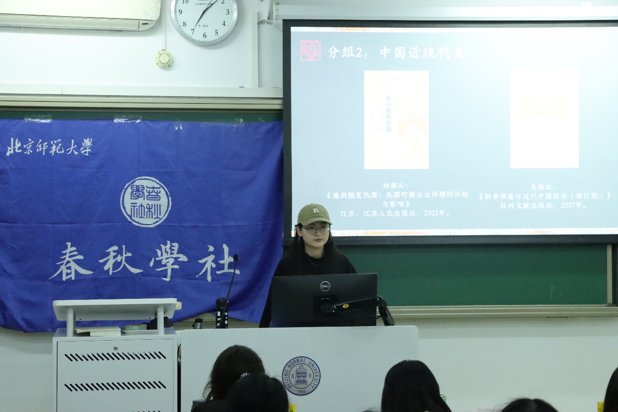 首先,社长江怡慧同学带领大家回顾了本学期学社的工作点滴和精彩瞬间。在过去的一学期里,学社成功举办了一系列形式多样、内容丰富的活动,包括讲座、读书会、经验分享会等日常学术与学业辅导活动,并承办了第五届全国本科生励耘史学论坛。接着,江怡慧同学代表本届理事会向社员们的辛勤付出表达了感谢,并为本学期的优秀干事赠送了精心挑选的书籍,鼓励大家在今后的工作中继续努力。