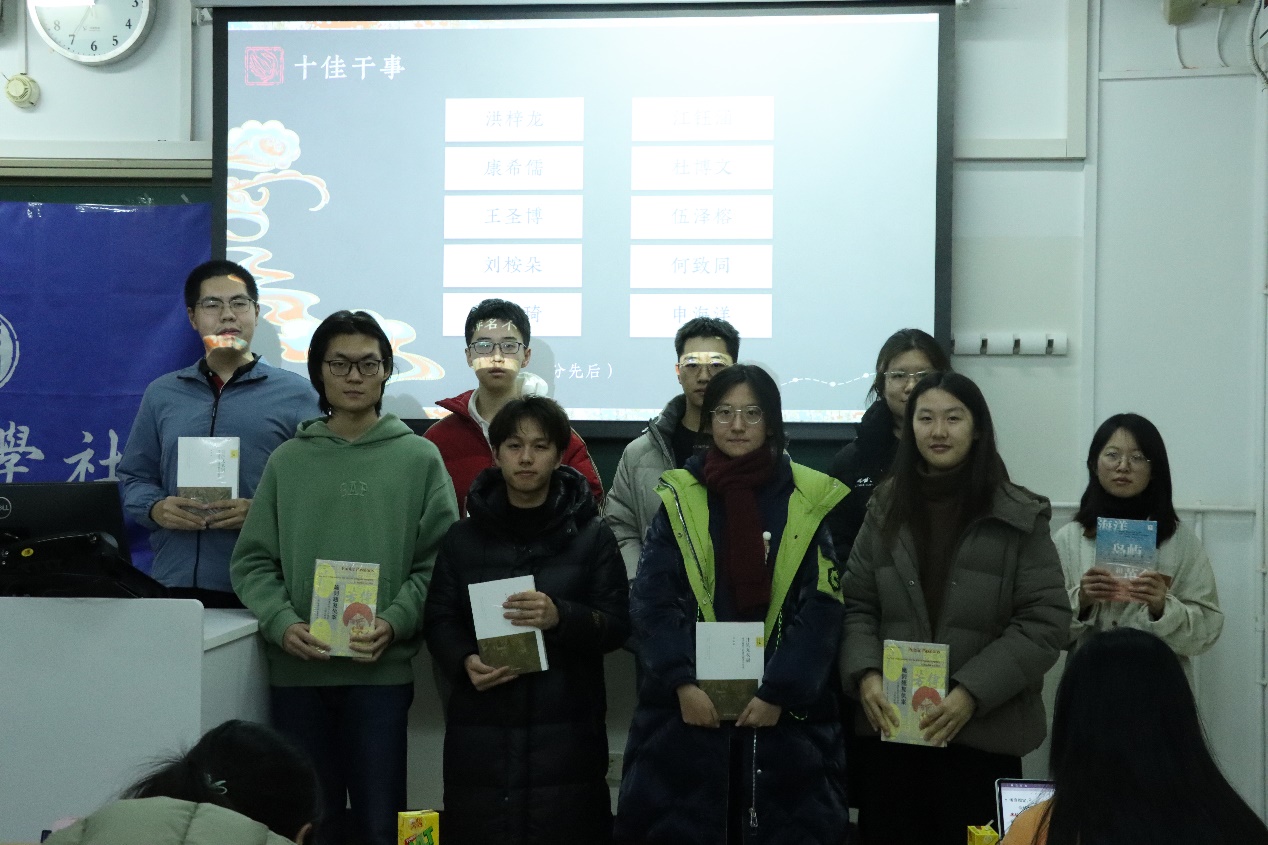 随后,学社为大家推荐了寒假阅读书目,包括中国古代史、中国近现代史以及世界史三个类别共十一本著作,并布置了写作读书报告的任务。希望大家能够利用寒假时间积极学习、主动思考,在广泛的阅读中不断充实自己,提升自己的写作水平。最后,全体同学合影留念,本次大会圆满结束。