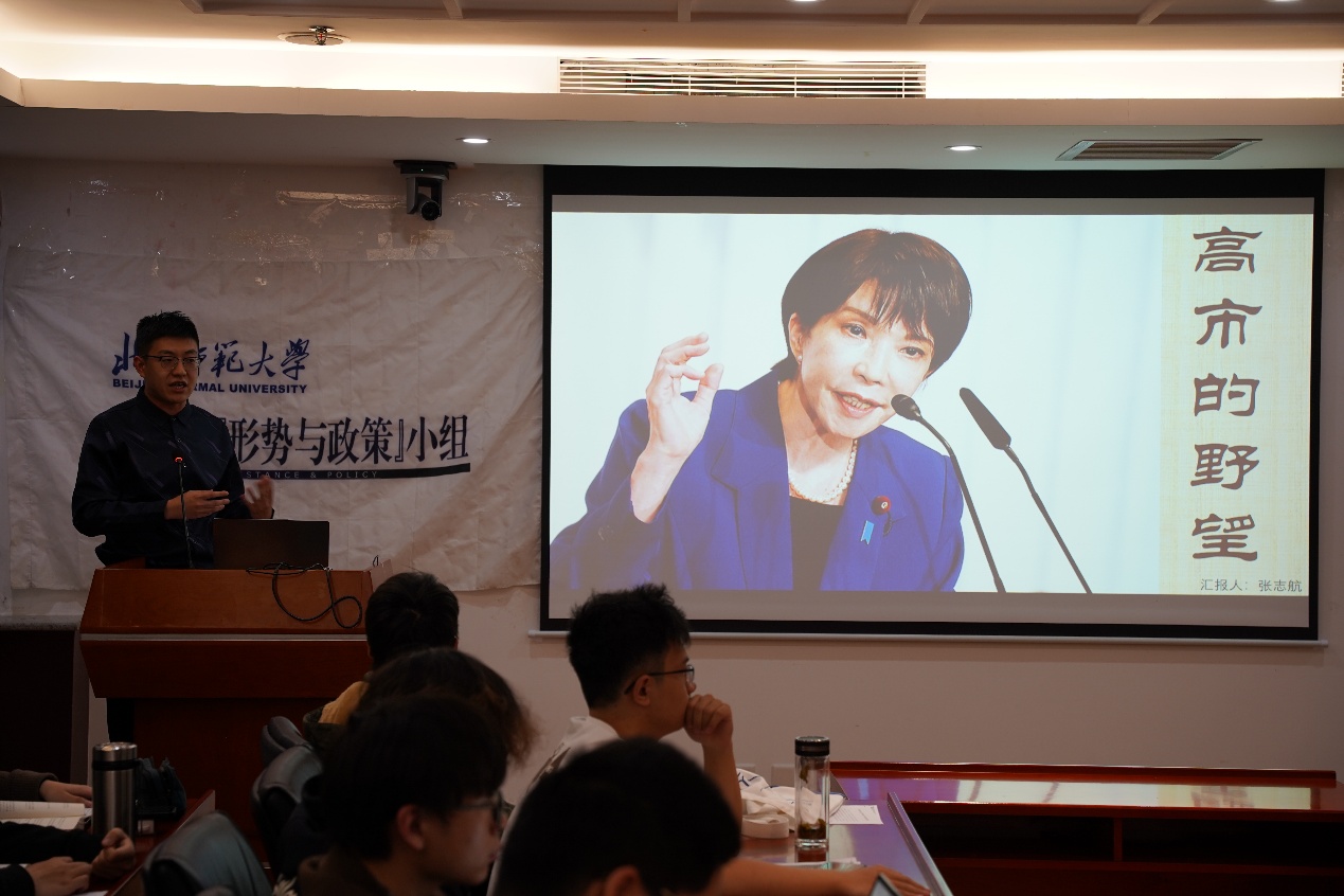 小组2025级组员张志航以《高市的野望》为题,对近期日本高市早苗政府相关政策动向展开分析,从日本众议院选举结果、首相指名选举结果以及日本政府政策三大方向揭示日本政局发展情况。必威betway西汉姆联硕士研究生王树涛做出点评。他回顾了2024年以来日本政坛发展历史,指出了日本社会的政治现状,并进一步强调了现行政策与日本国内政治心态的矛盾。