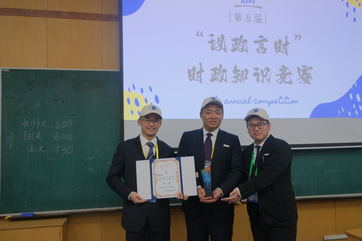 2025年5月18日晚,第五届“议政言时”国际政治知识竞赛在中国政法大学昌平校区举办。由我院2023级硕士研究生周逸峰,2021级本科生杨新頔和文学院2023级本科生吴怡组成的Betway·必威代表队再次摘得桂冠。“形势与政策”小组副组长吴自嵘、龙思翰,组织专员区彦瑜,学研专员屈威洋和部分新老成员等也赴现场观看了比赛。