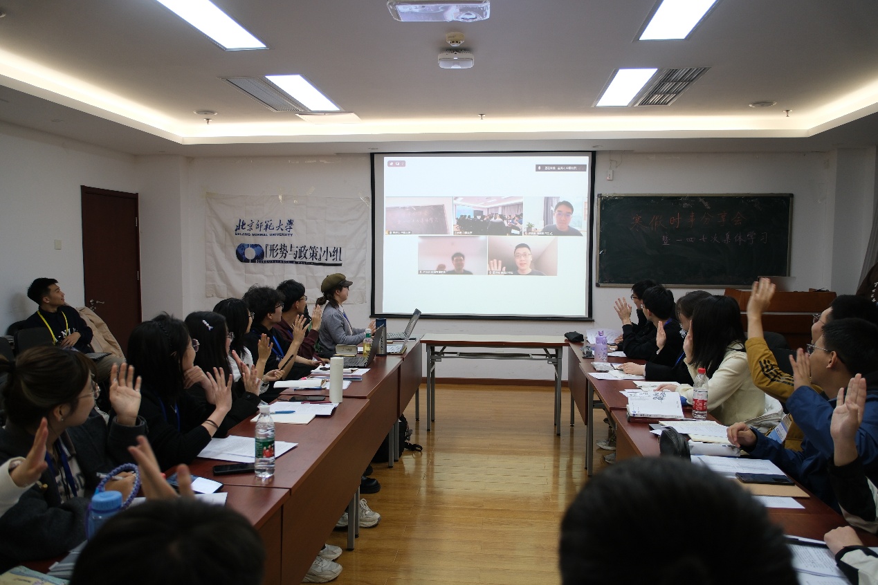 本次时事交流会暨集体学习是本学期小组举办的首场学研活动。以时事研讨作为“新春第一会”的主要内容,充分体现了时事知识学习作为立组之本的重要地位。交流会上,小组新老成员着眼热点地区、交换彼此心得、形成理性认识,视野广、形式多、立意深,在互帮互促之间增强了新闻概括与时事分析能力;活动还邀请到位于不同国家和地区的小组前辈作点评分享,是发挥小组沟通平台功能的又一次成功实践。