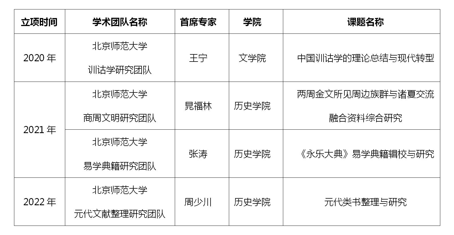 近三年北师大立项的国家社科基金冷门绝学团队项目