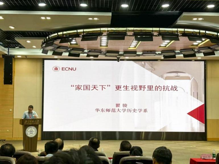 华东师范大学历史学系党委书记、教授瞿骏作《“家国天下”更生视野里的抗战》主旨报告,探讨抗战如何重塑中国人的家国观念与民族意识。抗战促使民众从家族、家乡认同转向国家认同,推动民族观念的普及与内地—沿海的思想交融,作为中流砥柱的中国共产党与对中华文化有着“温情与敬意”的学者共同为赓续中华文明作出了重要努力。