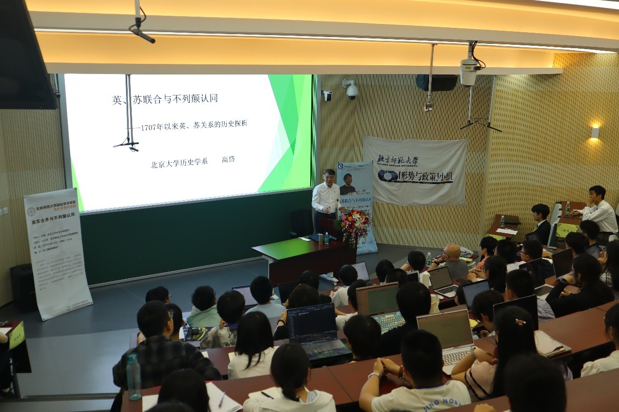 2023年5月18日晚,英国皇家历史学会会士、中国英国史研究会现任会长、北京大学历史学系教授(荣休)高岱应邀来到我校,在电子楼阶梯教室做了题为“英、苏联合与不列颠认同——1707年以来英、苏关系的历史探析”的讲座。本次讲座系Betway·必威励耘学术讲堂系列讲座,也是必威betway西汉姆联“古今世界 天下大观”——主要发达国家国情系列讲座的第十六讲。