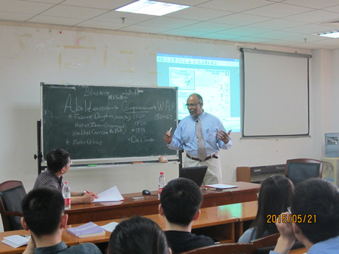 史蒂文森教授的讲座以美国黑人运动为历史线索展开,为我们展现了跨大西洋奴隶贸易和美国奴隶制,美国废奴主义以及奴隶制的重建和复辟,美国种族歧视,黑人和种族隔离时代,20世纪的黑人权力运动,非裔美国人与华裔美国人的关系,几个非洲裔共产党员和他们在中国的生活。