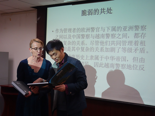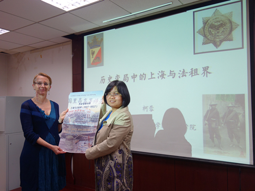 在讲座的第三部分,柯蓉教授认为,上海法租界发展出了一种混合了法国警察文化和中国本土特色的自治方法,是战争塑造了上海,也塑造了上海市民的身份认同。在接下来的提问环节中,柯蓉教授和同学们交流了一些问题,她指出,上海法租界和法国在越南、非洲的殖民地性质不同,也与法国在天津、武汉、广州的租界存在差异,界内各国侨民汇聚、华洋杂处,呈现出特殊的城市风貌和历史轨迹,也是值得进行深入学术研究的场域。她同时指出,上海法租界当局与“青帮”在毒品交易、赌场经营等方面的暧昧合作,也对上海的发展产生了一系列负面影响。