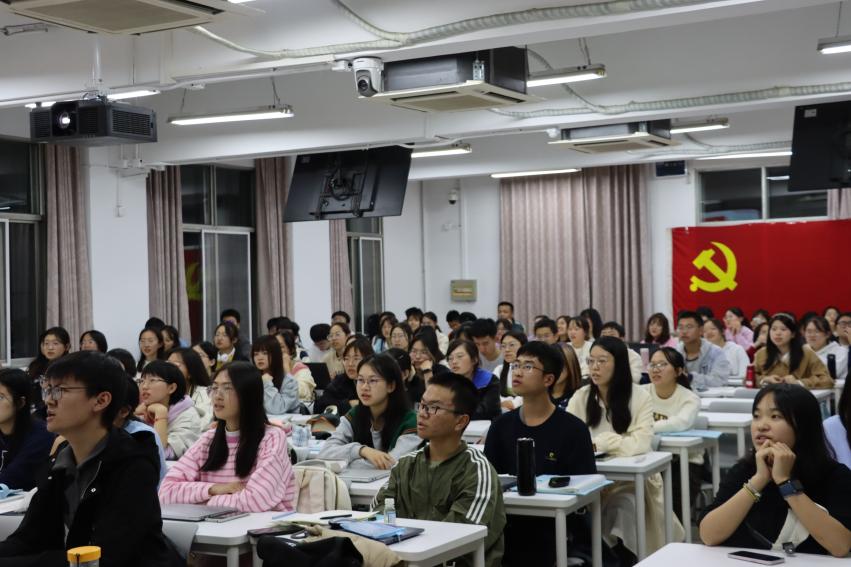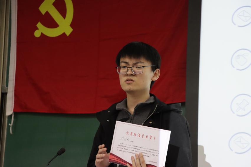 大会第三项,2023级硕士生党支部李硕晗同志以“向党员看齐,向组织靠拢”为主题进行发言。首先他祝贺同学们正式成为入党积极分子,但他指出,这仅是万里长征的第一步,鼓励同学们多向身边的党员同志学习靠拢,多与培养联系人沟通。随后李硕晗结合自己的入党历程向大家做了具体分享,向同学们朗读了他在入党申请书上写下的入党动机,回顾自己的入党初心,也以此提醒大家牢记初心。通过分享疫情期间党员冲锋在前的生动事迹,李硕晗同志再次点明了党员所肩负的权利与义务。他希望同学们在未来的发展道路上正态度、明方向,能做到思想坚定、态度端正、目的明确。一方面做到认真学原理、悟思想,读经典著作,学基本原理,关注时事新闻;另一方面做到肯付出、乐奉献;守纪律、遵法纪。最后他希望同学们珍惜入党机会,在过程中学有所获。