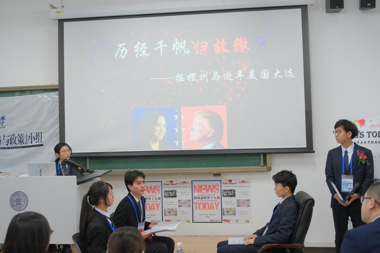 活动中,“形势与政策”小组2024级新成员分为三组,围绕日本社情、美国大选、中东和平等国际热点话题,结合历史与现实进行主题展示。