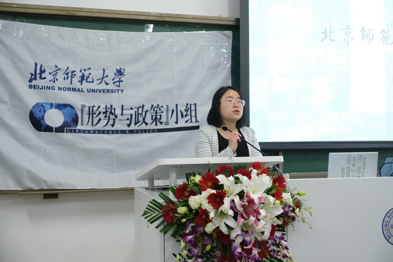 各组展示结束后,牛小游老师和徐畅老师分别作了总结发言。牛老师对“形势与政策”小组近二十年来一以贯之打造高标准的精品活动、助力学生思想政治教育与人才培养的实践表示高度赞赏,认为本次论坛反映出同学们严谨专业的选题设计和清晰透彻的表达逻辑,充分展现了师大学子的视野与风采。她勉励大家始终站在时代背景下思考,致力于完善学习研究的深度和精度,并希望小组继续统筹好“形势与政策”第一课堂与第二课堂,为北师大学生思政教育再添新彩。