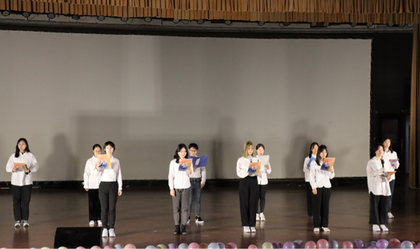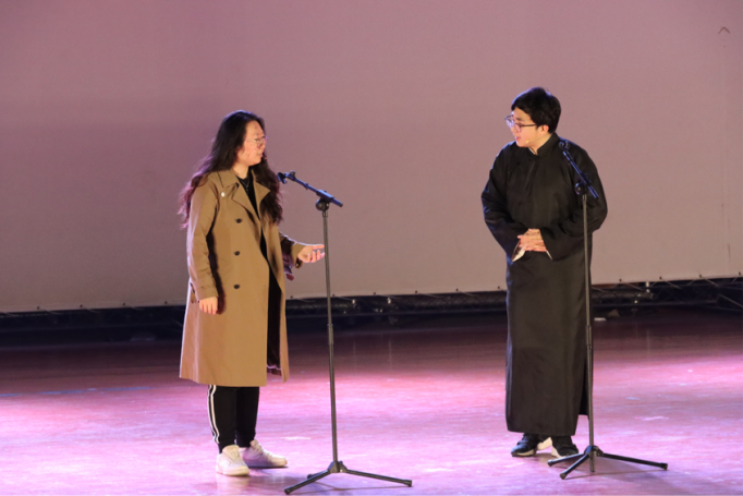 一首《如愿》拉开了晚会第一篇章“回忆往昔”的序幕。闫芳铭、刘翔宇同学的相声《如何是好》以生动活泼的表演让我们在欢笑中领略相声这种雅俗共赏的经典的魅力;李伊璘、凌可敬等同学共同演唱的歌曲《错位时空》,以悠扬的歌声,激励着同学们传承红色血脉,大步向前;在乔顺同学悠扬的小提琴声和两位同学优美的伴舞中,我们领略了新疆春天的光景;一曲《稻香》则表达了对童年无限的怀念。