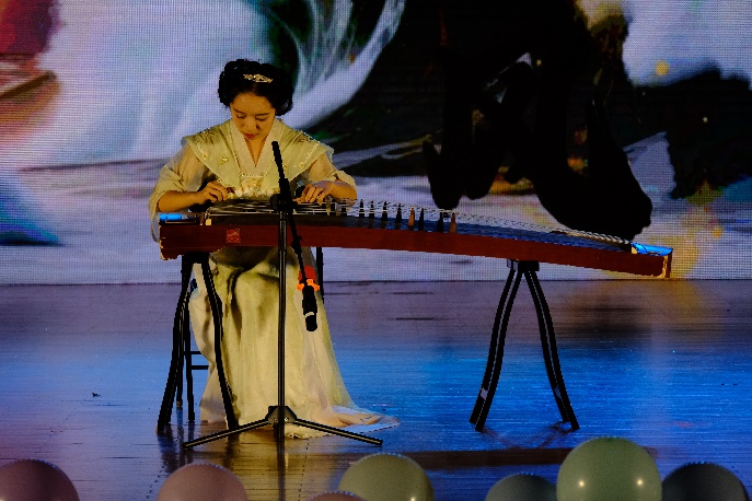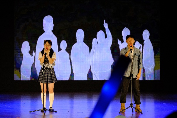 芦宣伊同学的《梅尚程荀京剧选段》让我们从各派唱腔中领略国粹风韵,叹赏中华文化之卓雅;甄睿康同学的《等你下课》令我们回忆起往昔青葱时光,回忆起等待的酸甜苦辣;乔顺、韩里夫、王灵睿三位同学带来的提琴协奏《魔笛序曲》使我们感受异域音乐的悠扬,为同学们带来了一场视听盛宴;张慧心同学带来的古筝曲《战台风》,令我们在琴音激越中寻大爱平稳。
