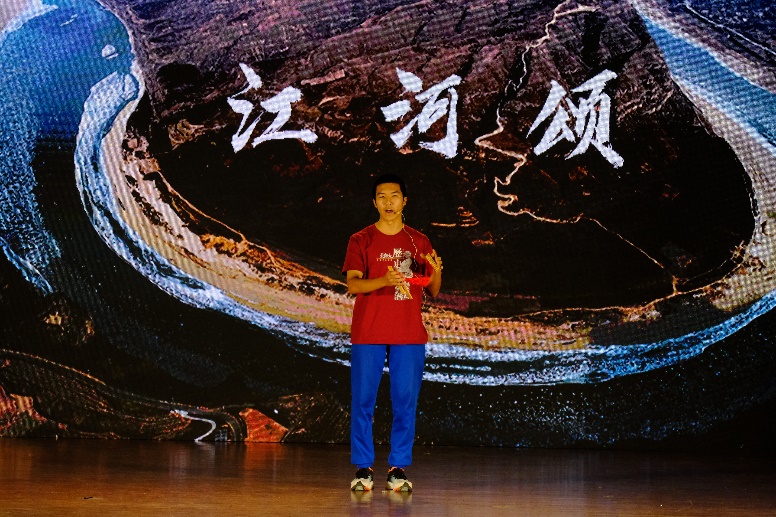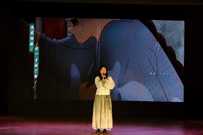 第一篇章“越古风韵”由乌日罕、王敬怡、孙艺蓓同学带来的舞蹈《寄明月》拉开帷幕。刘雨欣同学的《兰亭序》让我们走进了舒风朗月之中,共同聆听一份亘古而来的悠远思念;白羽石同学的《江河颂》,是对神州大地纵贯五千年的感喟,是中华民族献给祖国大好河山的赞歌。