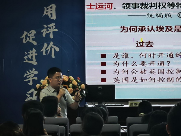 在高中组,中山华侨中学张春英老师执教高一新授课《明至清中叶的经济与文化》,以“盛世”与“停滞”的观点对比出发,引导学生思考明至清中叶经济文化的发展与局限。广东番禺中学原紫钿老师执教高二新授课《中国古代的户籍制度与社会治理》,围绕“中国古代基层治理”的主题设计学习任务,引导学生通过中国古代户籍制度、基层组织与救济优抚政策,认识中国古代基层治理的特点和作用。东莞外国语学校庞晓林老师展示了高三复习课《一条运河的诉说——资本主义世界殖民体系的建立与崩溃》,以苏伊士运河的历史发展串联资本主义世界殖民体系的建立与崩溃过程,运用诗歌等生动材料涵养学生价值观。