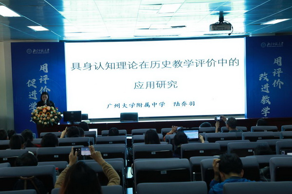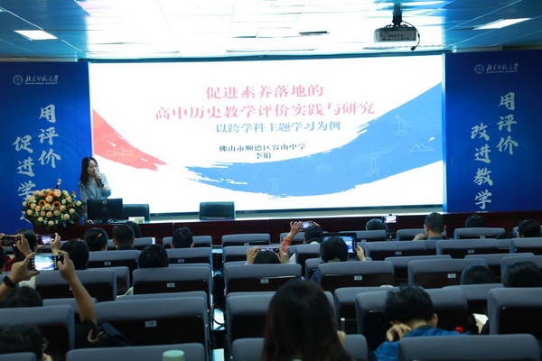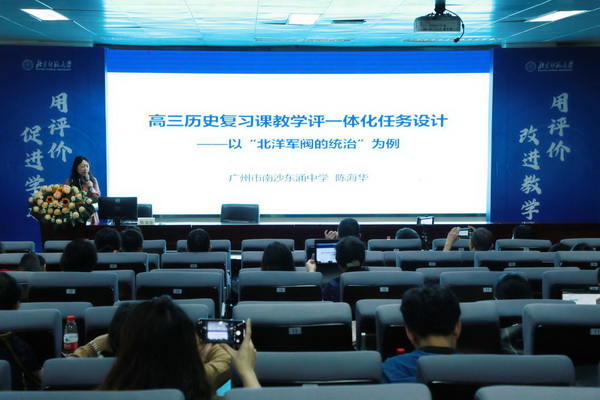 华南师范大学王继平教授作《基于教育目标新分类学的中学历史学业测评》主题发言,指出历史学业测评的核心是测评学生的历史学科思维能力,具体介绍了教育目标分类学在拟定教学目标、促进教学评一体中的价值与作用。