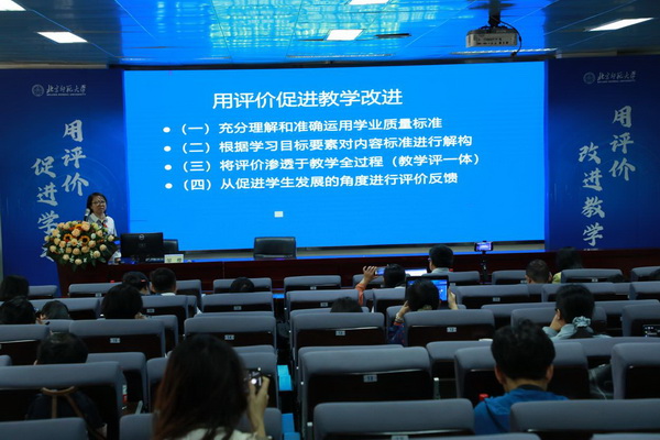 华南师范大学曾文婕教授作《以评促学的机理与路径》主题讲座,从社会媒介理论出发,介绍了以评促学的机理,重点探讨了“终结性评价何以促学”“过程性评价何以促学”“学生自评何以促学”三个问题,援引实践案例进行了详细介绍。