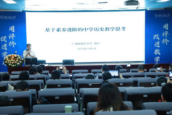 第一组专题研讨的主题为“素养导向的历史课堂教学”。东莞市教育局教研室胡波老师作《聚焦素养的历史课堂问题设计》专题发言,结合教学实践总结了历史课堂问题设计三大策略;中山市教育教学研究室刘刚老师作《素养导向与教学的进阶设计》专题发言,指出素养进阶是教学设计进阶的核心,结合具体课例介绍了教学设计进阶的成果;广州市执信中学刘琴老师作《基于素养进阶的中学历史教学思考》专题发言,介绍了素养进阶在博物馆学习、课程教学、作业模型设计中的实践经验;佛山市顺德区容山中学李娟老师作《促进素养落地的高中历史教学评价实践-以跨学科主题学习为例》专题发言,介绍了容山中学在开发跨学科主题学习课堂评价量表方面的成果;广州中学姚智老师作《数智时代高中历史教学评一体化实践研究》专题发言,指出智能化是教育变革的重要引擎,介绍了广州中学在实践探索中研究的数字赋能高中历史教学评一体化实践路径。