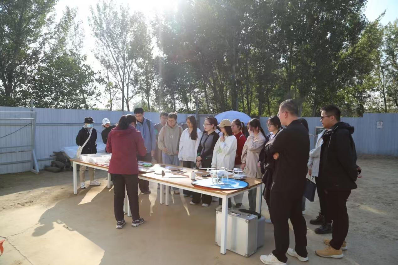 沐浴着秋日午后的暖阳,师生在东门集合完毕,怀着期待的心情乘车启程。在经历一个多小时的车程后,我们最终抵达琉璃河遗址。甫一下车,我们便受到了热情接待,王晶老师先是带我们穿过小路,到达临时工作站,带我们实际感受了考古发掘工具使用方法,并讲解了西周代表性器物和陶片标本等。