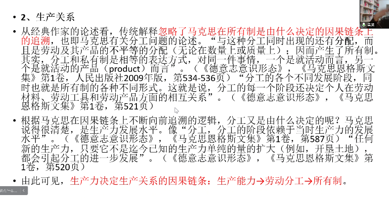本场讲座主要分为三部分:其一,马克思主义唯物史观在指导史学研究过程中出现的问题;其二,产生上述现象的原因,在于前苏联马克思主义理论家建构的唯物史观的传统解释体系存在不足;其三,重新回到马克思、恩格斯的著作原典,结合史实对唯物史观重新做出解释。