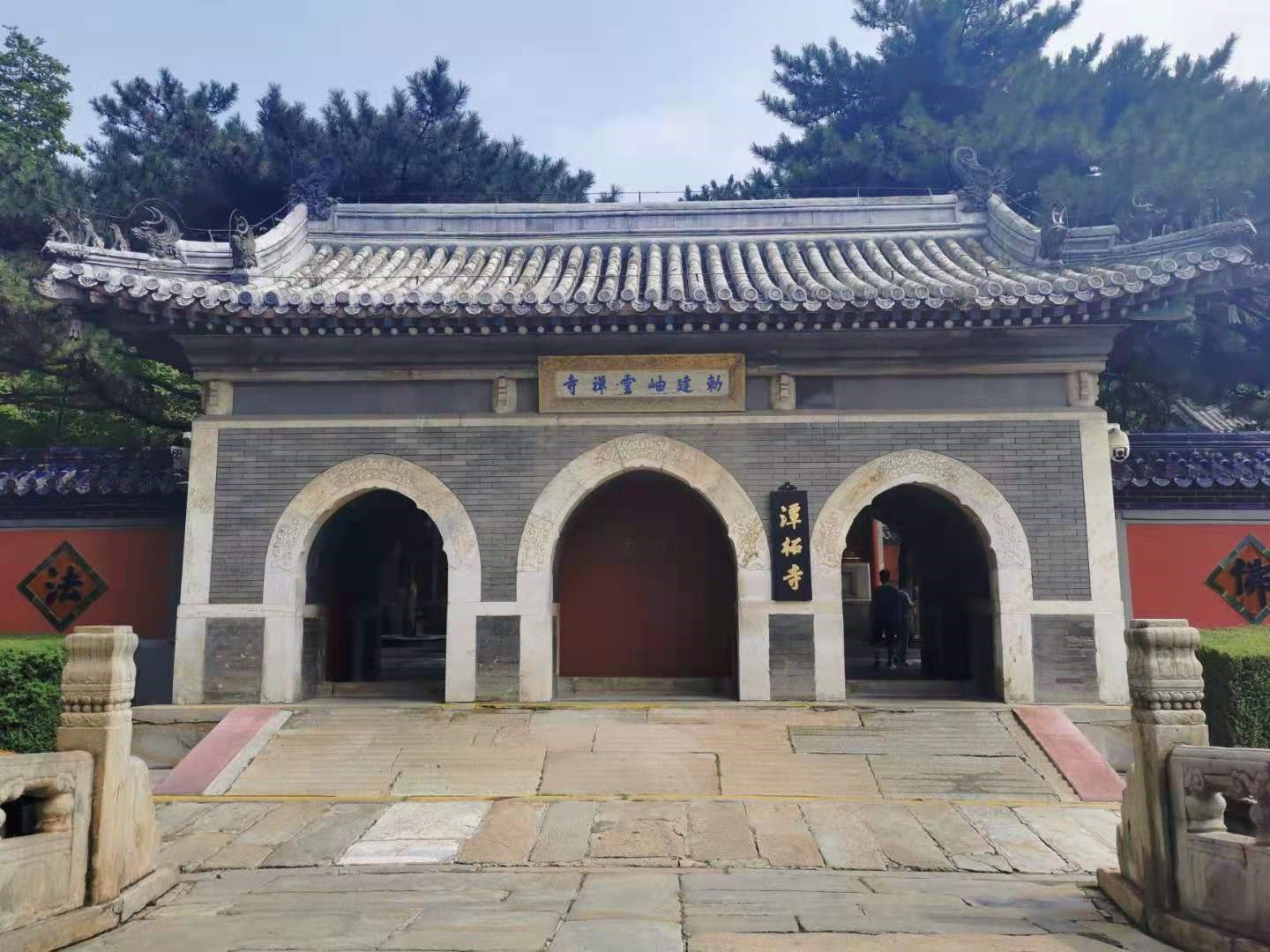 7月6日上午,实践队乘车前往潭柘寺。潭柘寺建于西晋愍帝建兴四年,中经历朝修缮,在清代由康熙赐名“敕建岫云禅寺”,成为北京地区最大的一座皇家寺庙。潭柘寺依山而建,同学们沿着寺庙中轴线逐级而上,既考察了上下塔林、流杯亭、观音洞等人文景观,也观赏了千年银杏、龙潭泉水等自然景观。同学们与老师围绕寺庙的建筑构造、重修碑文与彩绘壁画进行了热烈的讨论。