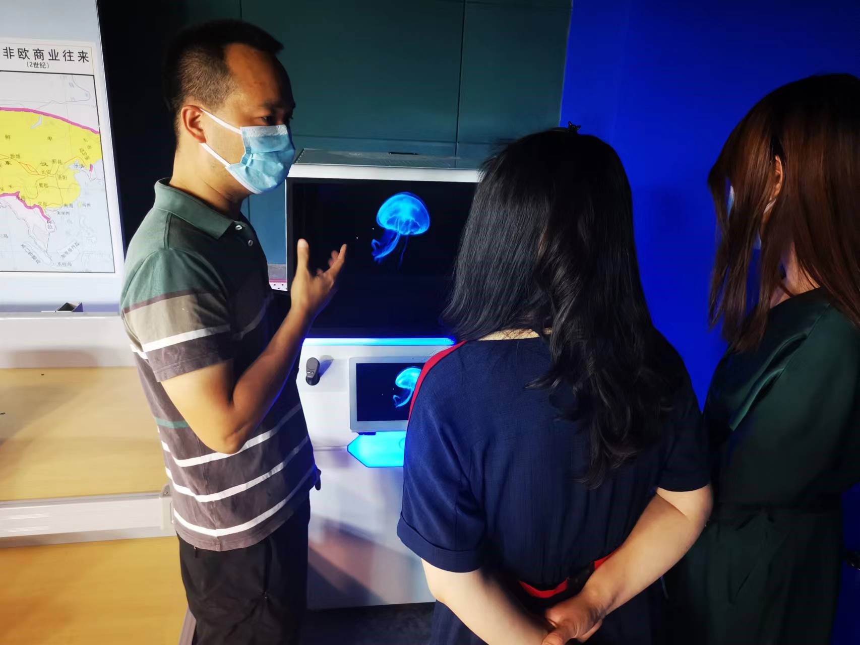 会谈后于波主编一行参观体验了党史虚拟仿真相关内容。