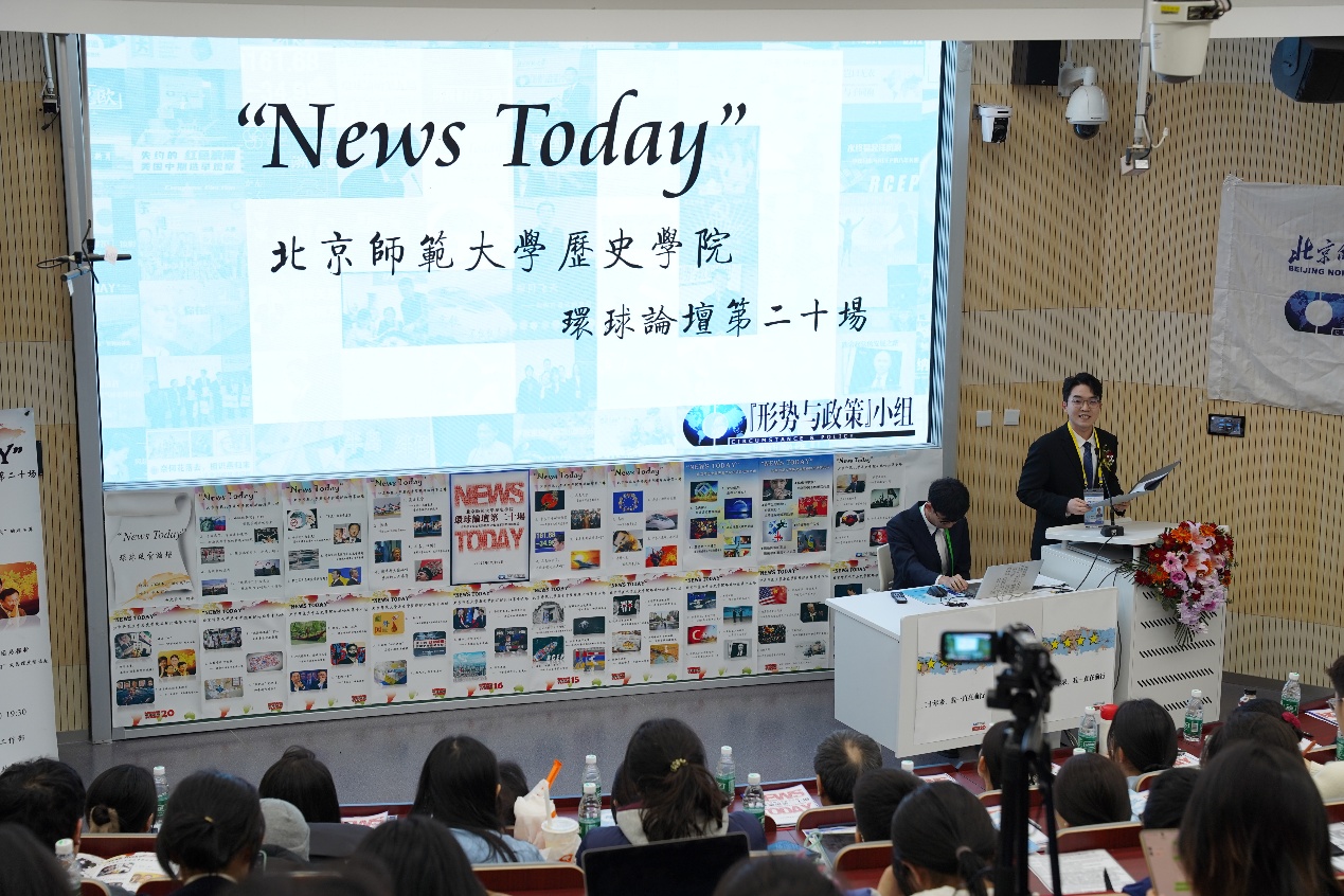 “News Today”必威betway西汉姆联环球论坛是必威betway西汉姆联依托“形势与政策”小组推出的一项特色精品活动,自2006年以来已连续举办二十场。活动中,学生自主选择感兴趣的国内国际时事话题进行分组主题展示,并邀请必威betway西汉姆联的教授学者进行专业点评。环球论坛拓宽了同学们的视野,培养了团队协作能力,也对外展示了北师大学生博古通今、胸怀天下的国际视野,在北师大乃至北京市高校范围内产生了广泛的影响。在论坛上表现出色的同学将有机会以“学生进课堂”的形式为全校本科生授课。十九年来,共有18个年级的同学先后54次登上讲台,受众已达数千人,为Betway·必威学生思想政治教育创新不断发挥积极作用。